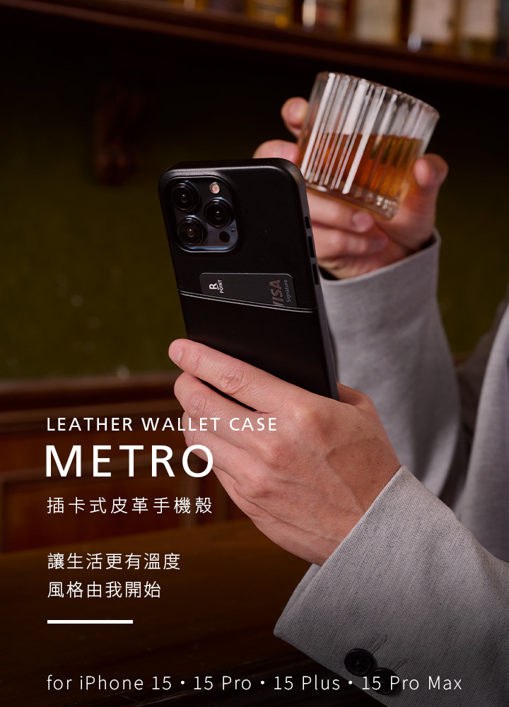Alto iPhone 15 Metro 插卡皮革手機殼 渡鴉黑