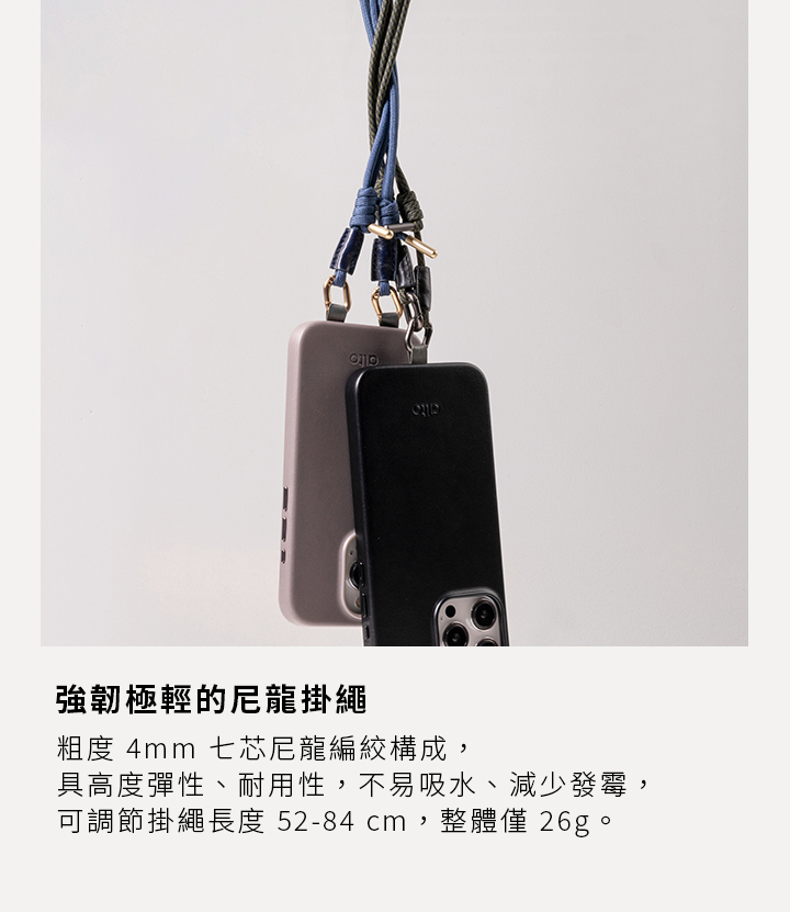 - 可調節掛繩長度 72-126 cm
