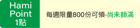 • 獎項「Hami Point 1 點」每週限量 800 份,先領先贏,領完為止。