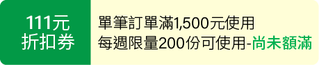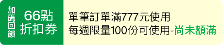 5. 本活動折扣券每帳戶限使用1次,限量500名,依結帳成功順序認定回饋資格,額滿為止。