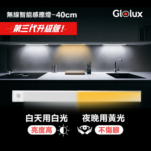 Glolux 第三代L40公分 感應燈條 白+黃 1049CL-40-WY (兩入組)