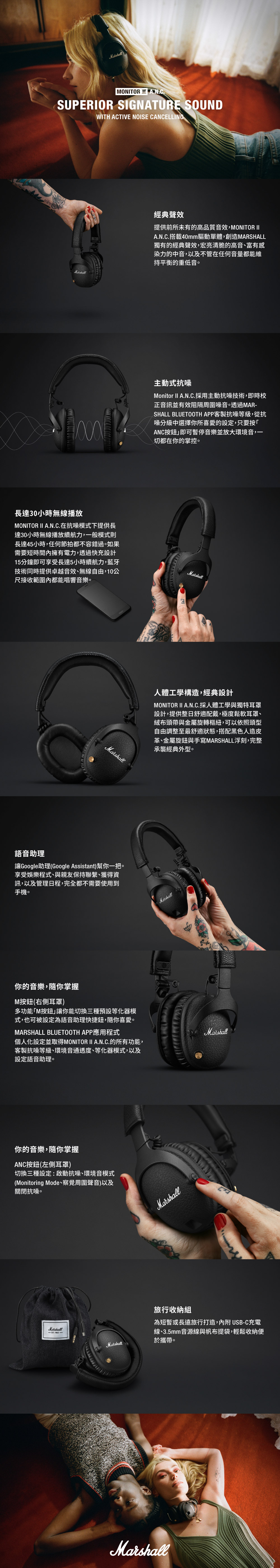 Marshall Monitor II A.N.C.主動式抗噪藍牙耳機-經典黑 - 公司貨