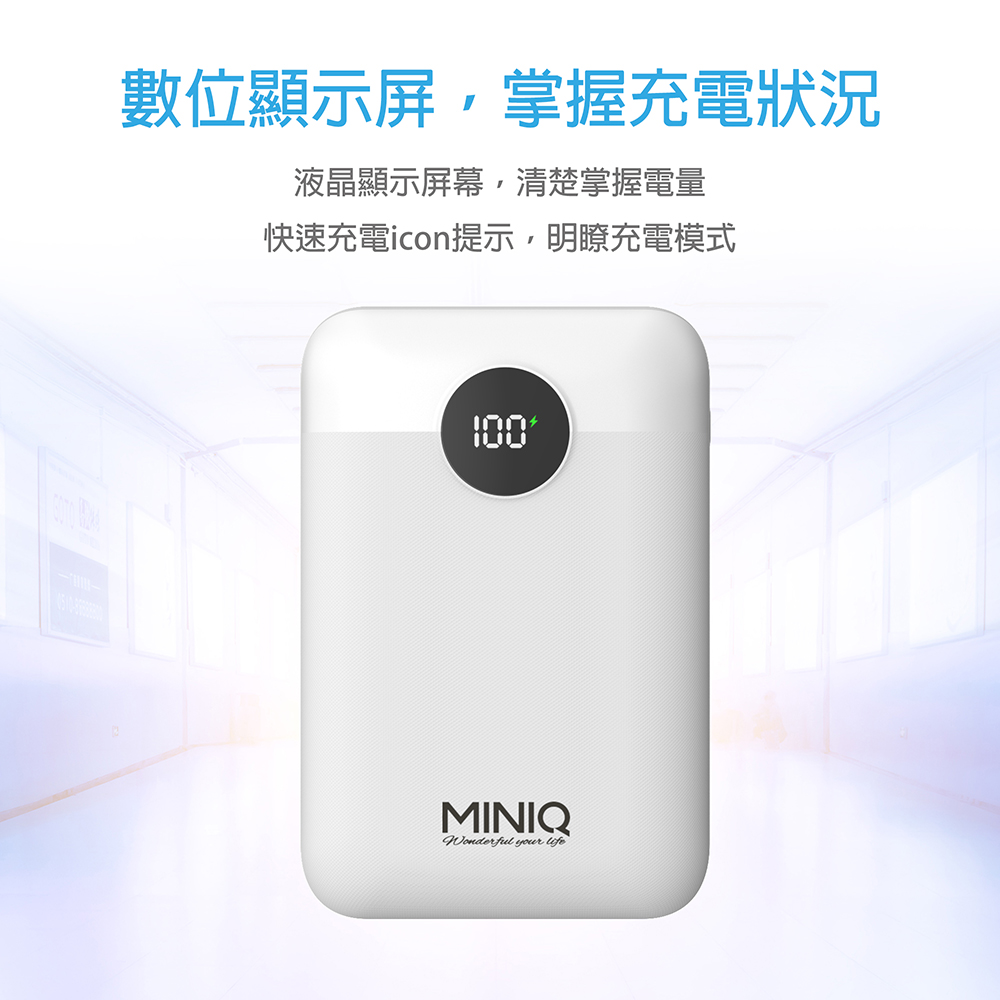 【MINIQ】PD+QC3.0數顯急速充電行動電源(白色)MDBP072/W
