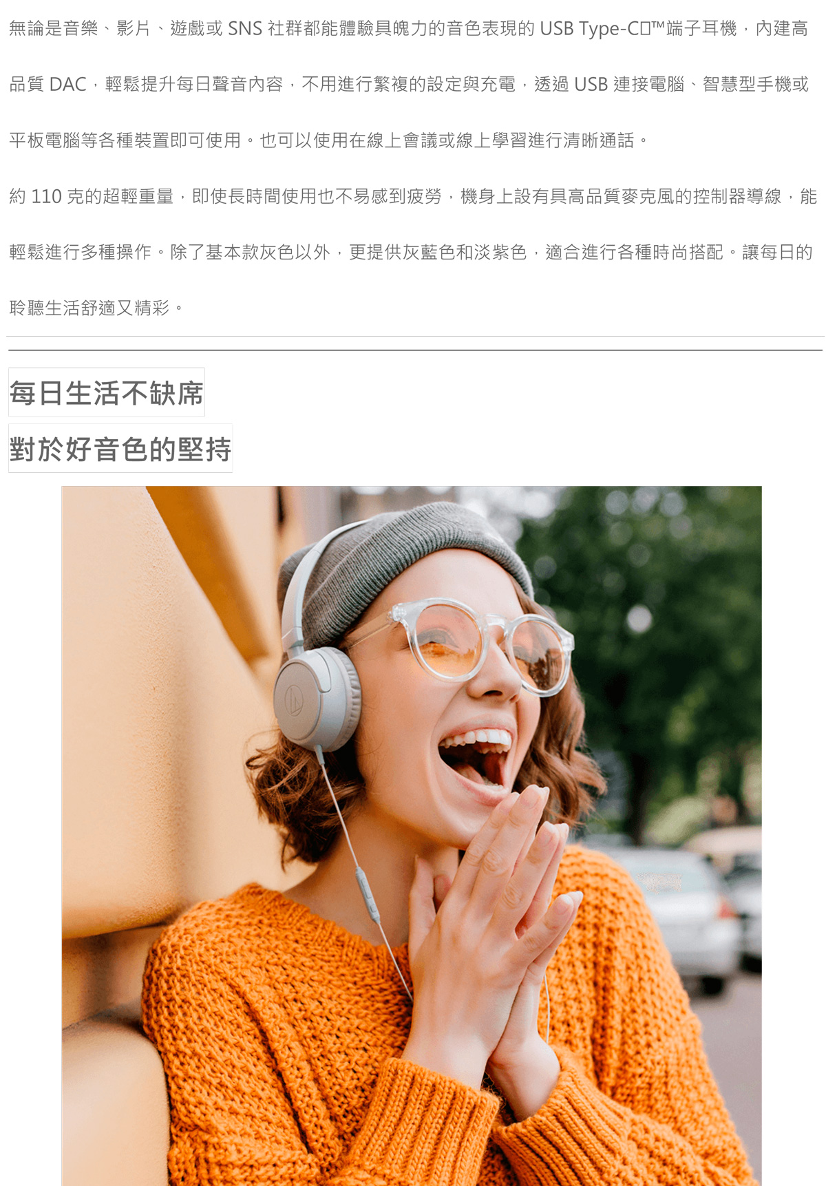 (灰藍)【鐵三角】USB Type-C用耳罩式耳機ATHS120C/GY