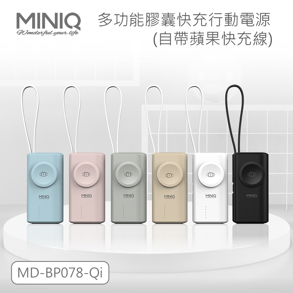 【MINIQ】 多功能膠囊快充行動電源/灰-MDBP078QI/GR