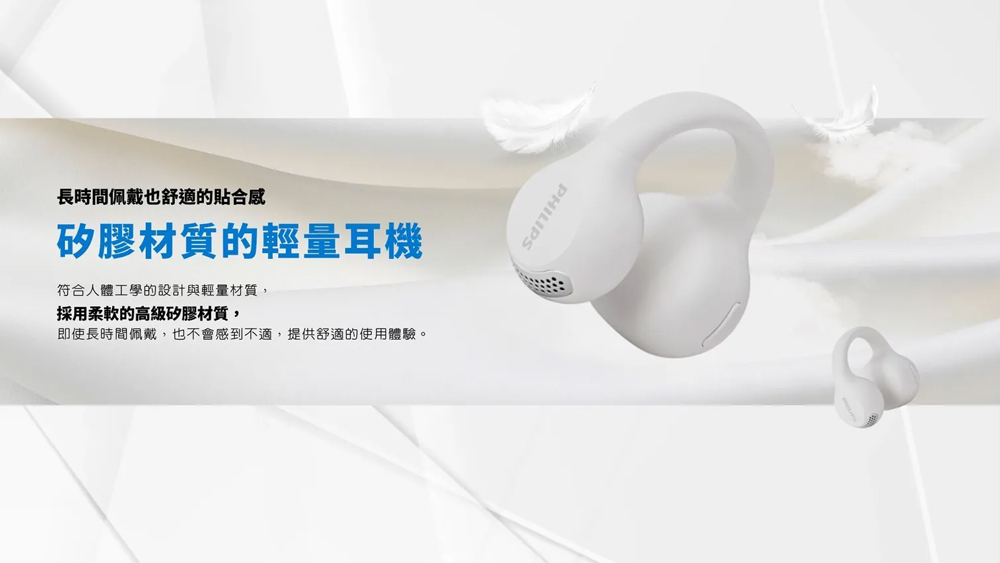 【PHILIPS】 AI麥克風長續航耳夾式無線藍牙耳機(白)-TAQ2000WT