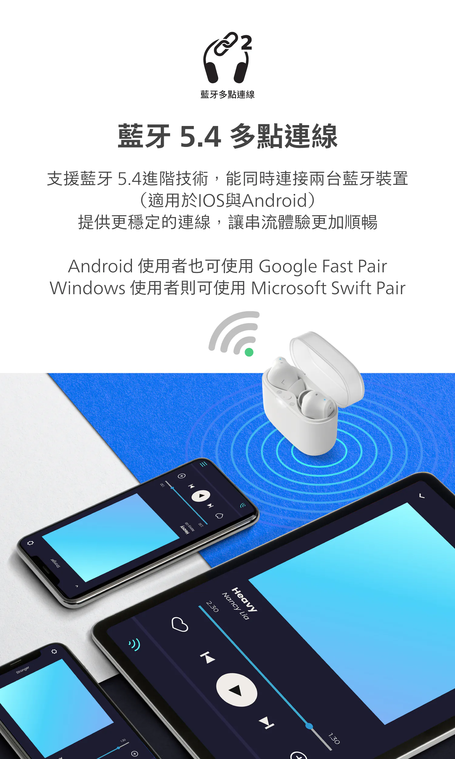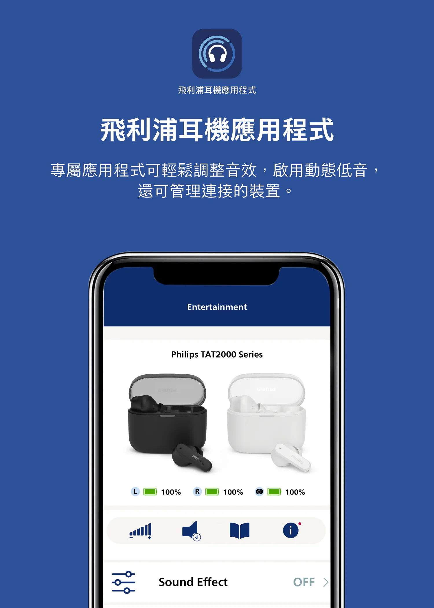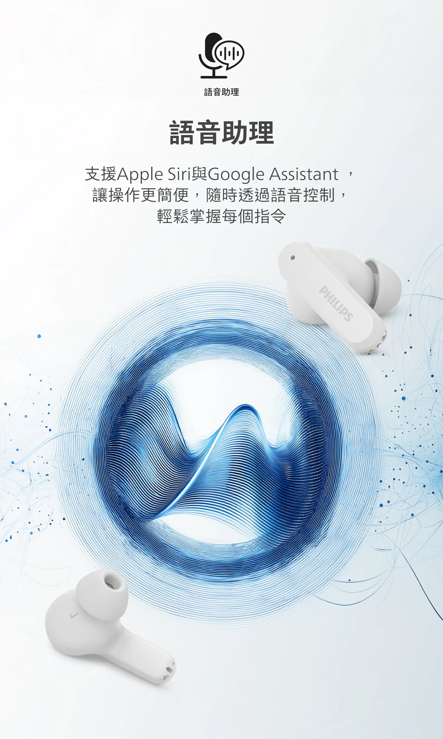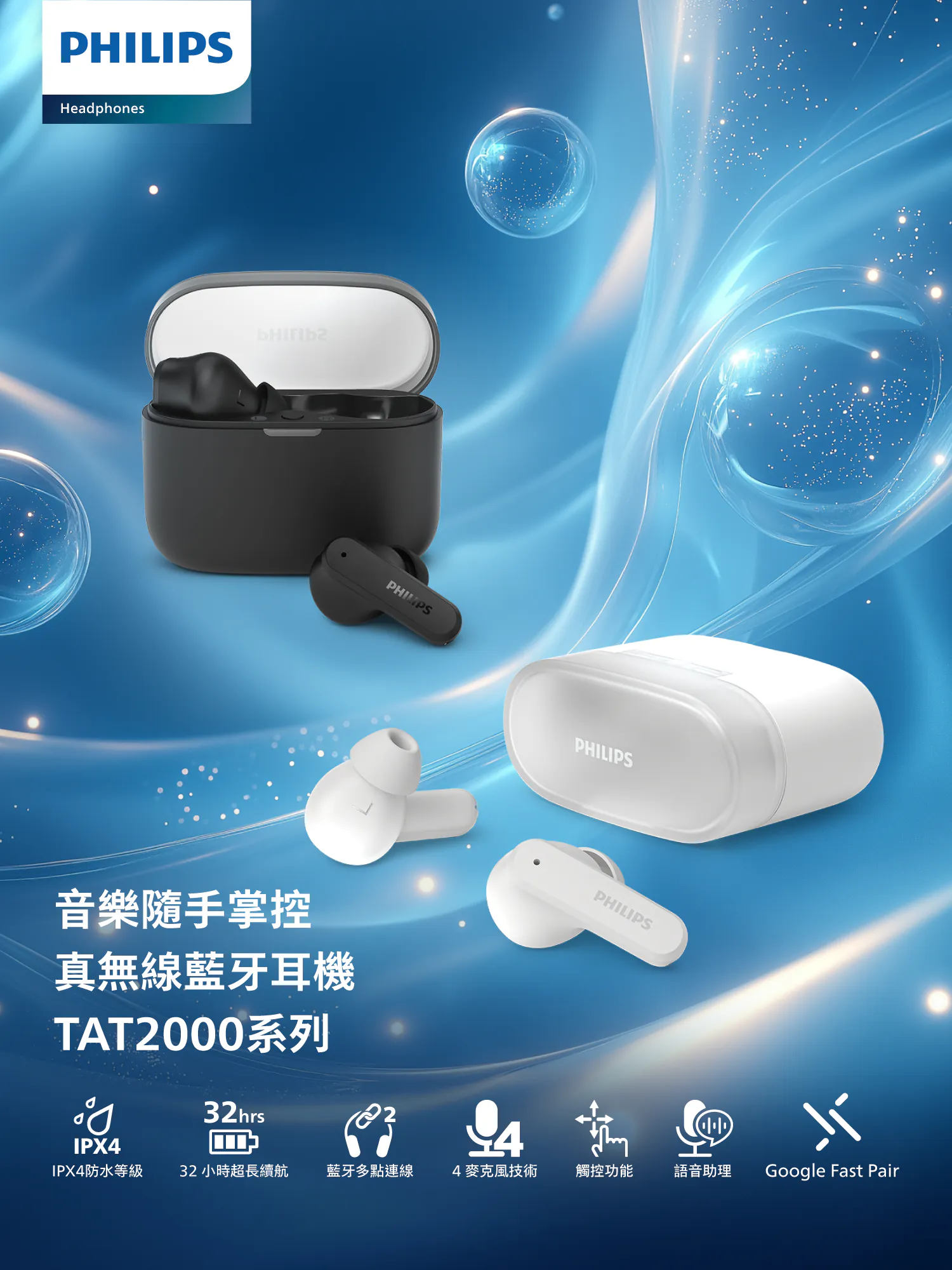 【PHILIPS】AI降噪4麥克風強化低音藍牙耳機(黑)-TAT2000BK