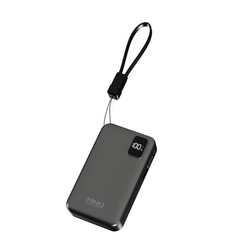 【MINIQ】22.5W自帶伸縮捲線數顯防爆急速快充行動電源/內斂灰-MDBP089Plus/GR