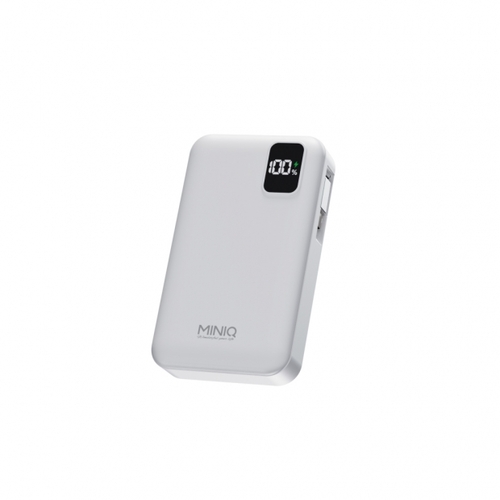 【MINIQ】22.5W自帶伸縮捲線數顯防爆急速快充行動電源/天使白-MDBP089Plus/W