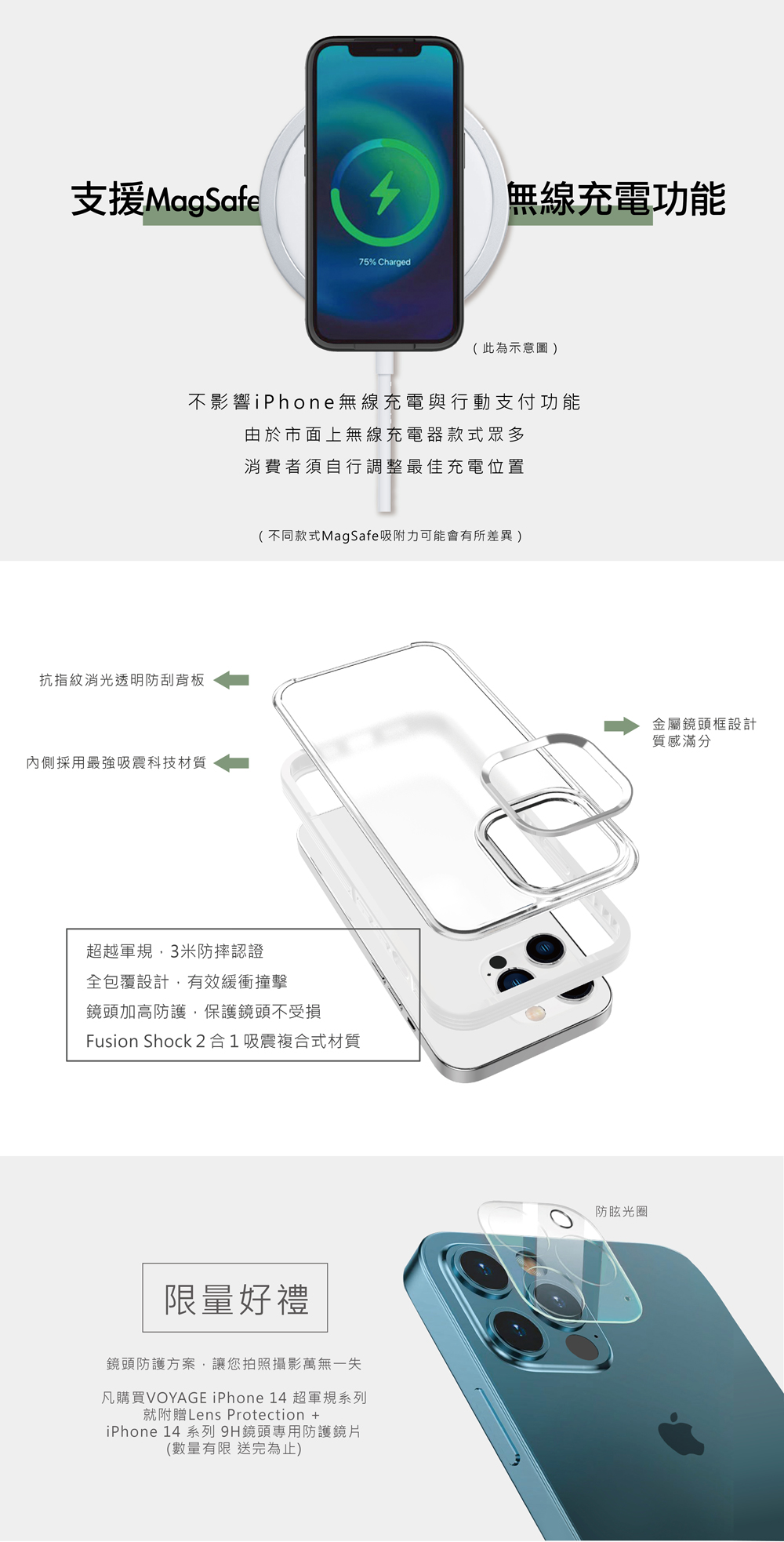 - 鏡頭區加高強化,保護鏡頭不受損