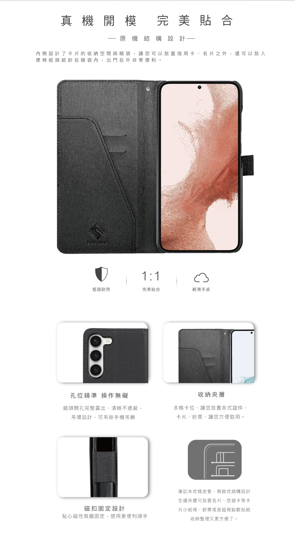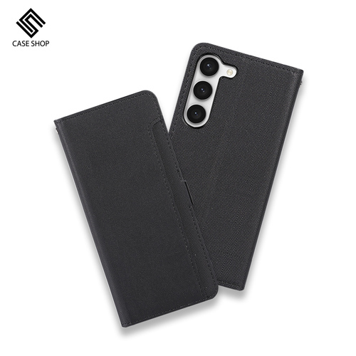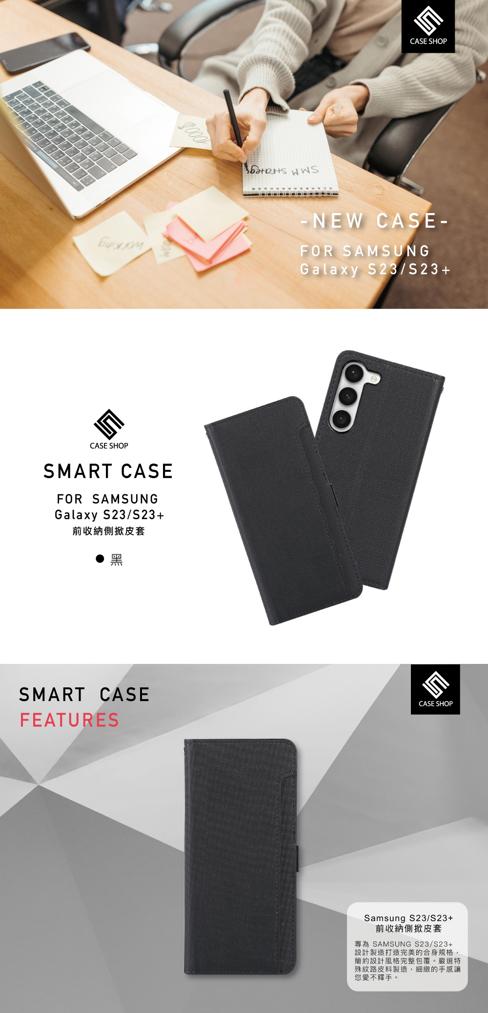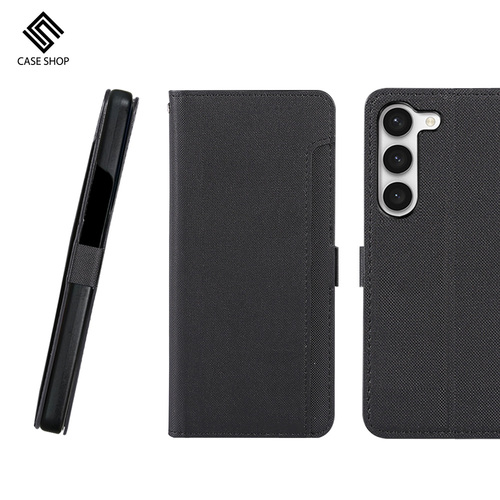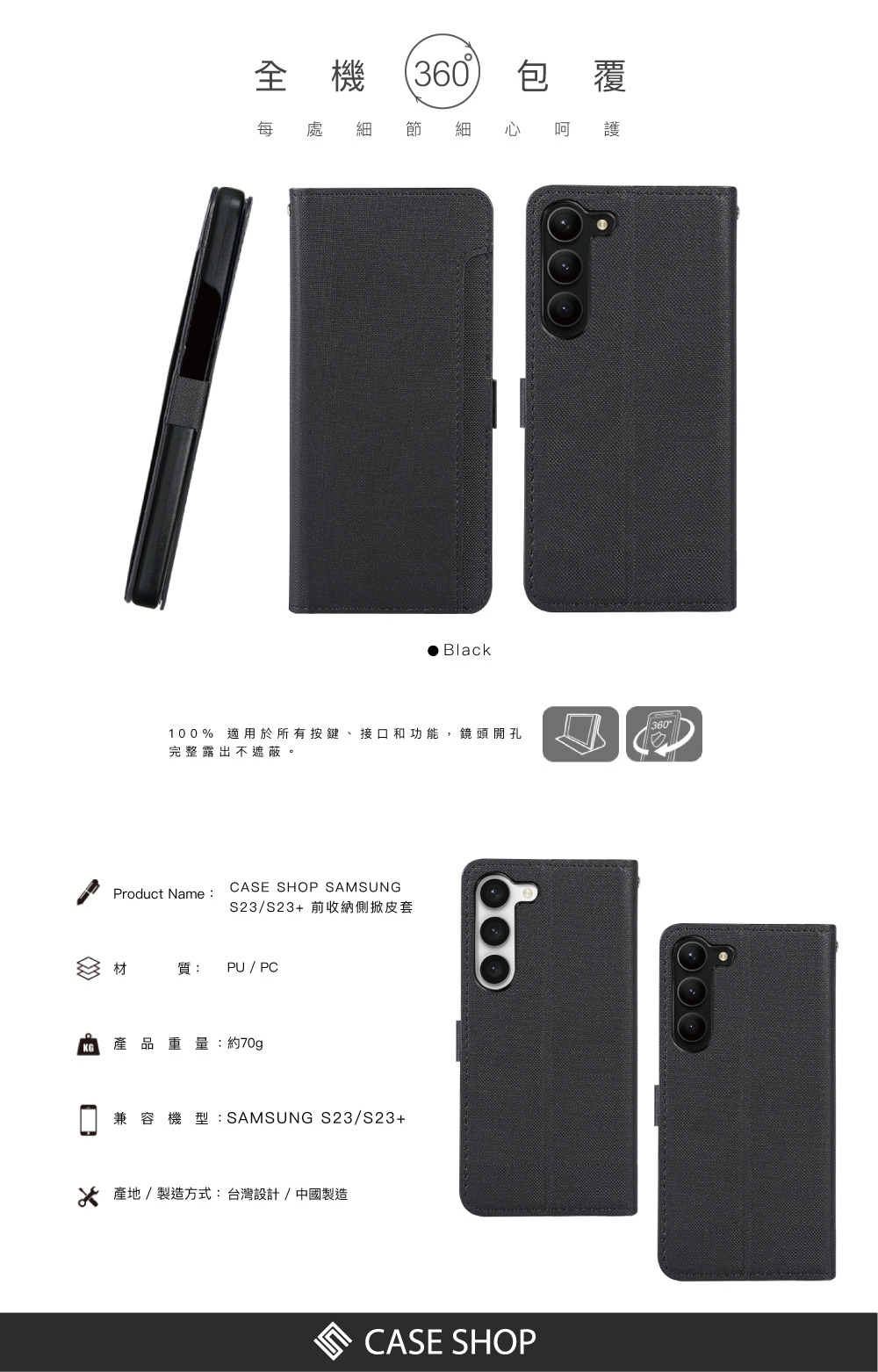CASE SHOP Samsung S23 前收納側掀皮套-黑