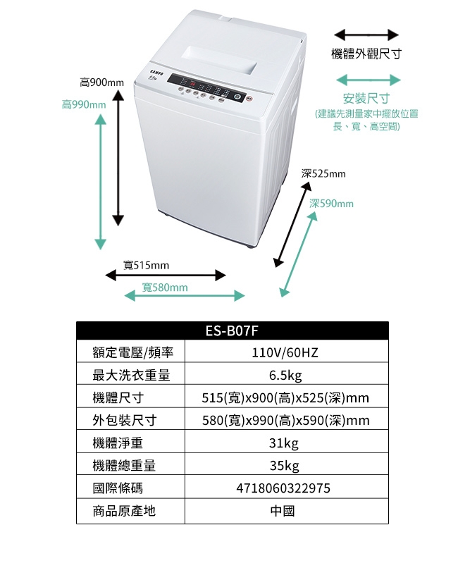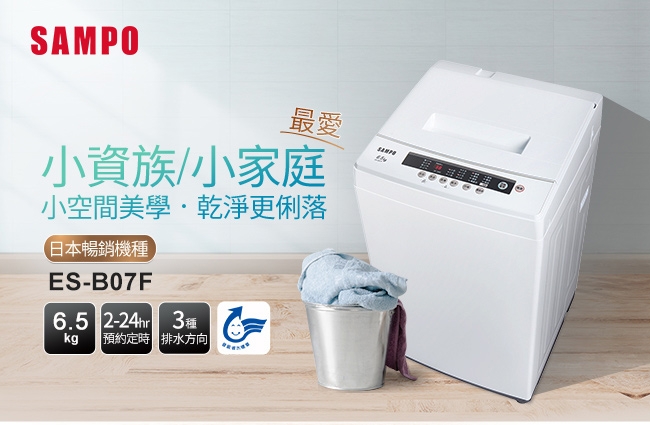 聲寶6.5公斤單槽直立式定頻洗衣機ES-B07F