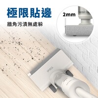 獨特滾刷貼邊結構,緊密貼合牆面與角落,櫃底、踢腳線、牆角縫隙一拖即淨,告別手動補擦的麻煩,真正實現「全面覆蓋」!