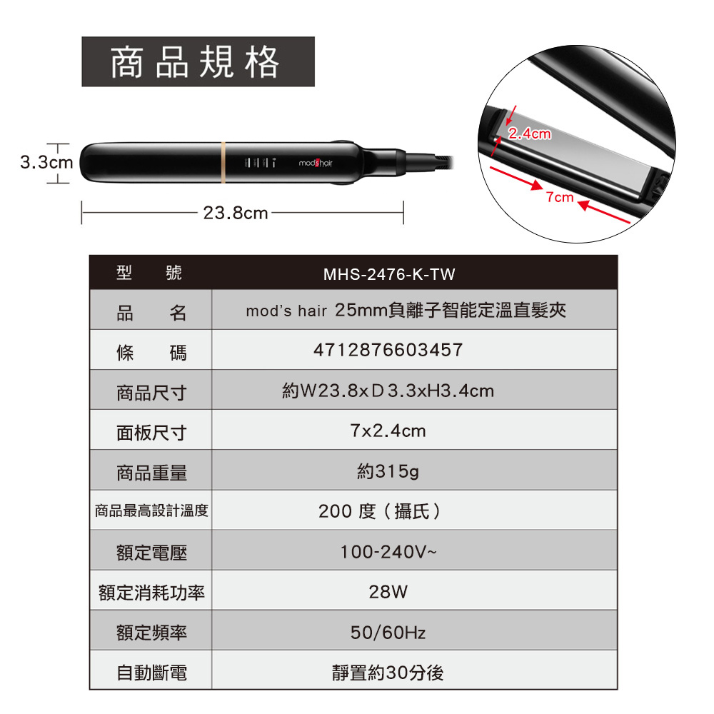 商品名稱:mod's hair 25mm負離子智能定溫直髮夾