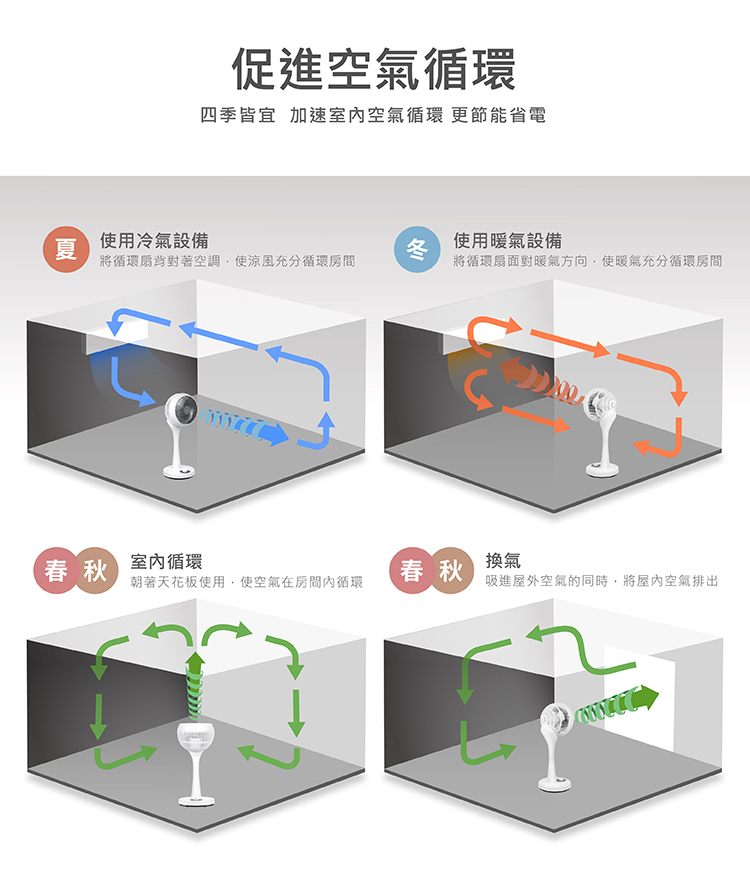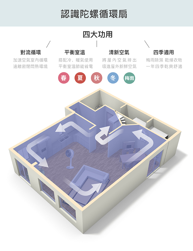- 搭配冷暖氣,加強循環對流