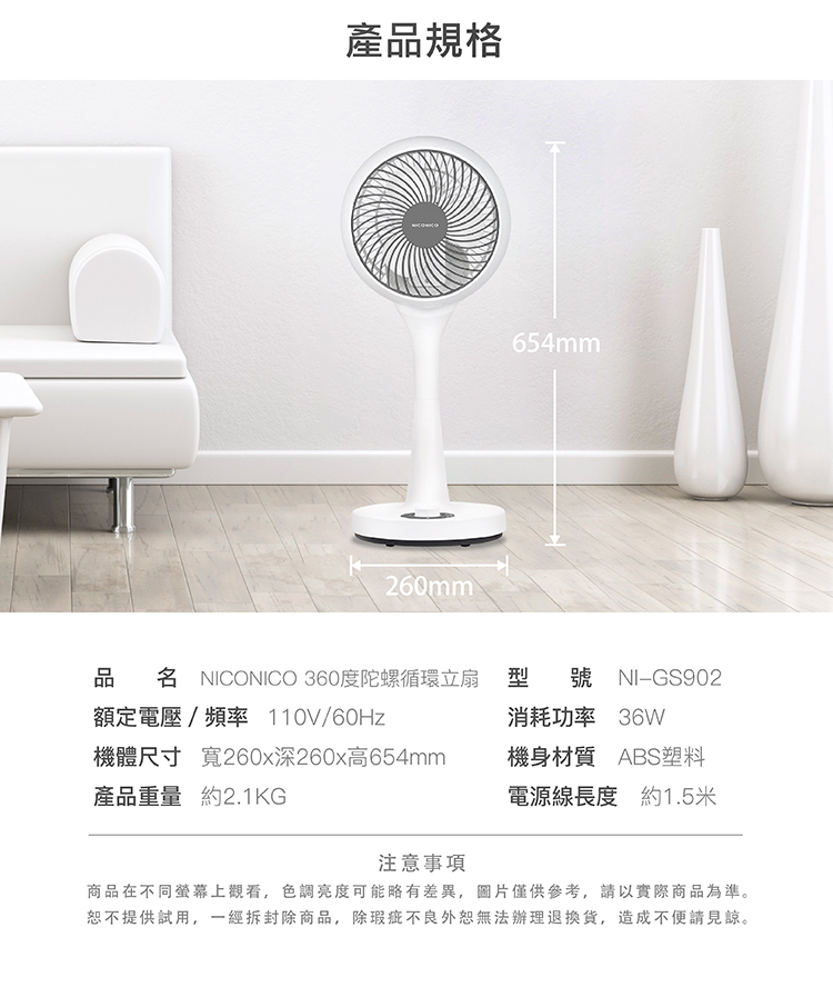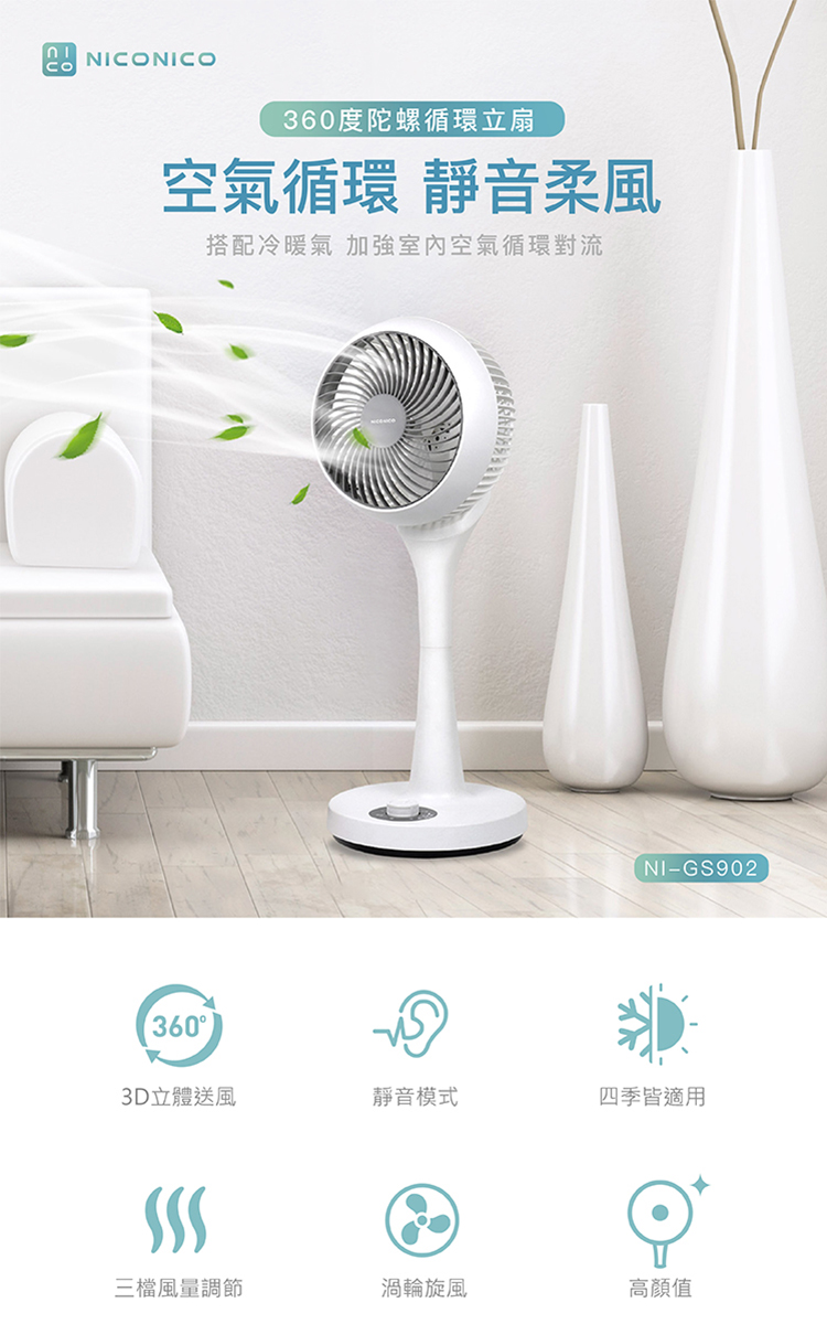 NICONICO 360度陀螺循環立扇NI-GS902