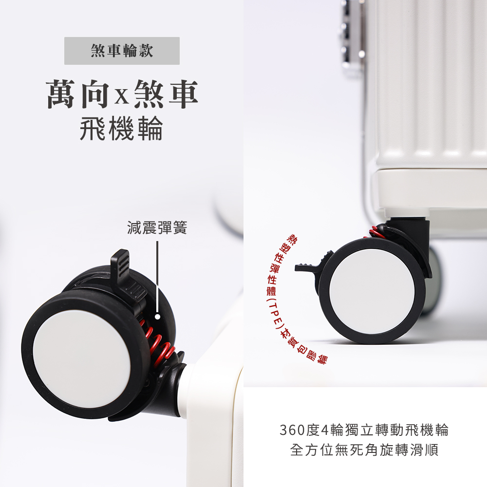 - 靜音萬向飛機輪,輪子是熱塑彈性體(TPE)材質的包膠輪,靜音耐磨