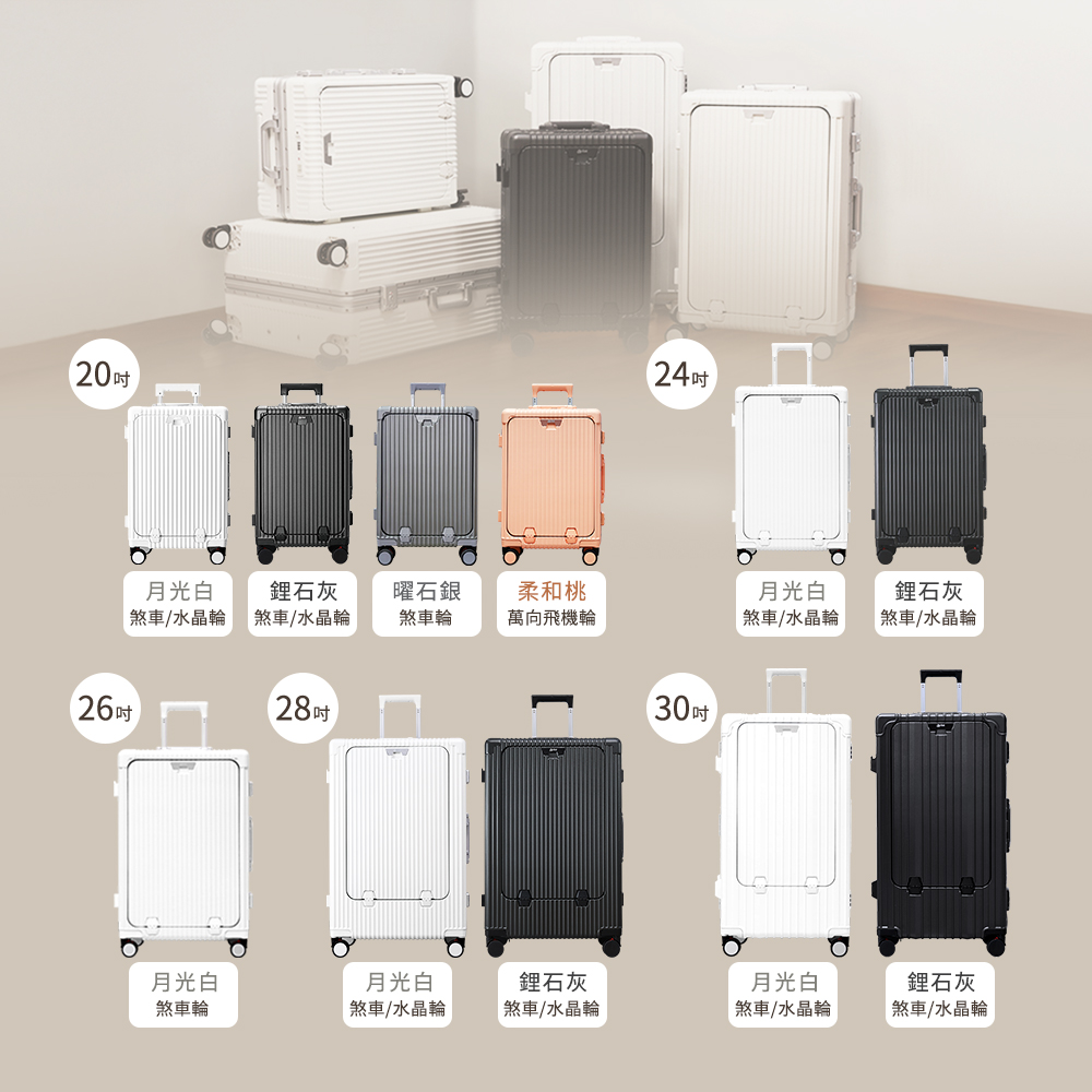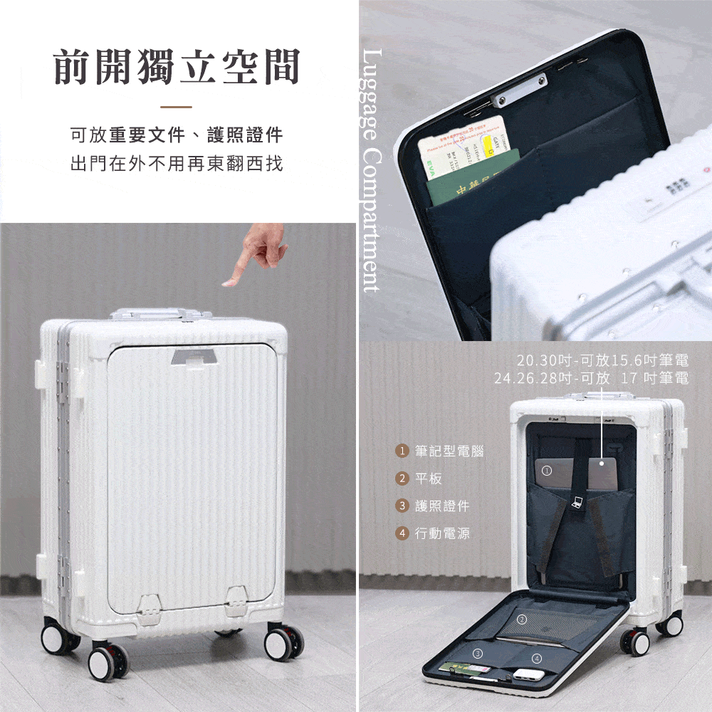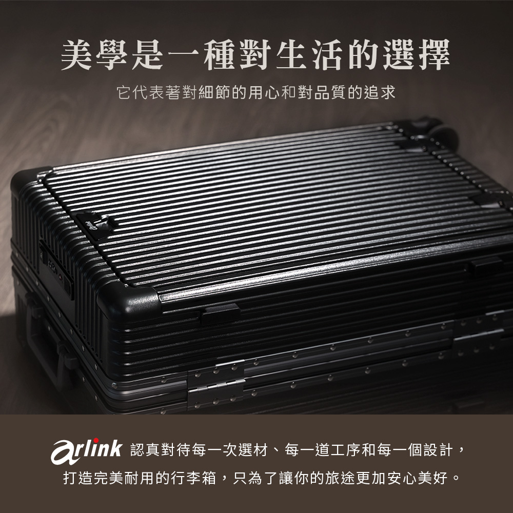 - 鋁合金邊框,相較拉鍊行李箱更加防水、耐摔耐撞、安全不易被撬開