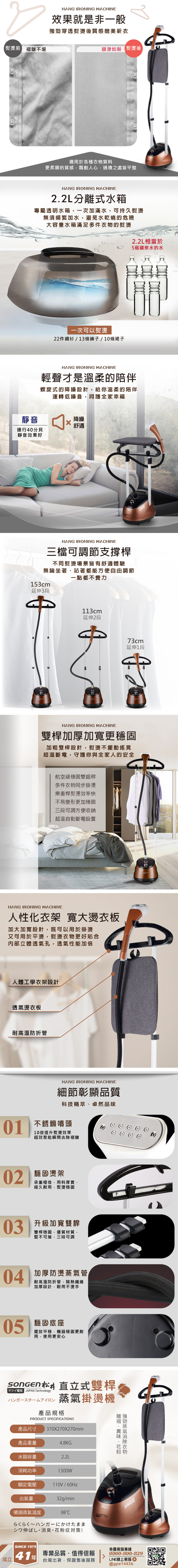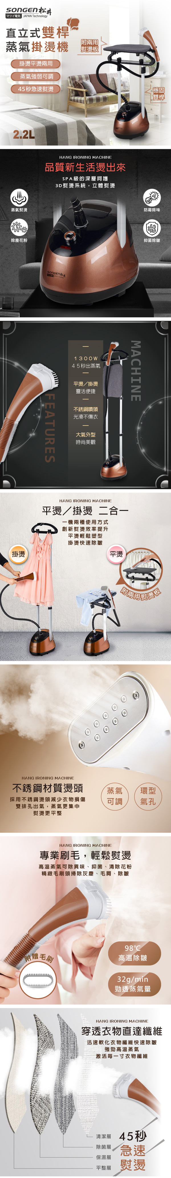 SONGEN松井 日系直立式雙桿蒸氣掛燙機 SG-MY828A