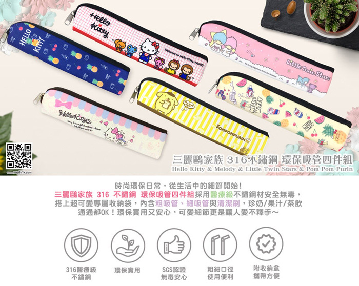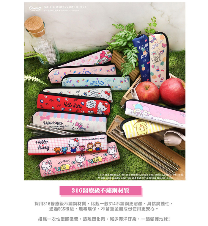Kitty 316不鏽鋼環保吸管四件組 (隨機出貨)