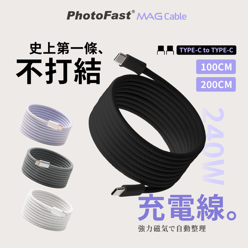 【PhotoFast】Mag Cable 磁吸收納編織快充線 2M-黑