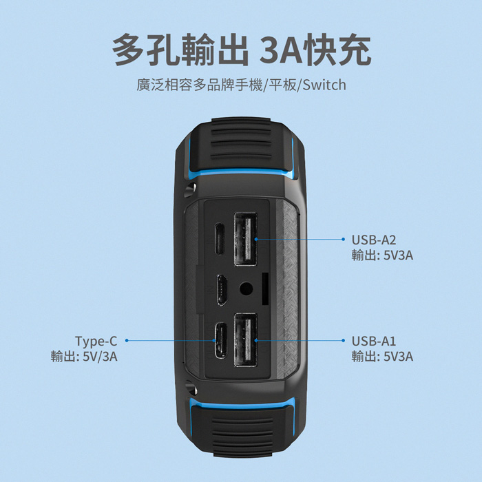 - 三孔輸出,3A快充,最多同時支援3台裝置同時充電 ,兼容各種設備,廣泛相容各家品牌手機/平板/SWITCH