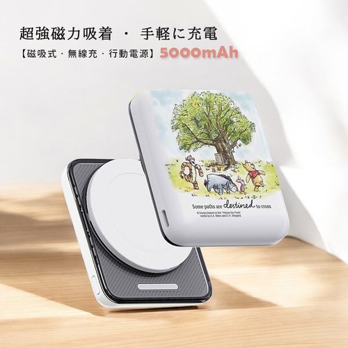 【正版授權】迪士尼 晶磁系列 迷你磁吸無線充行動電源 5000mAh-維尼起步走