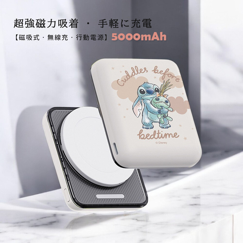 【正版授權】迪士尼 晶磁系列 迷你磁吸無線充行動電源 5000mAh-史迪奇抱抱