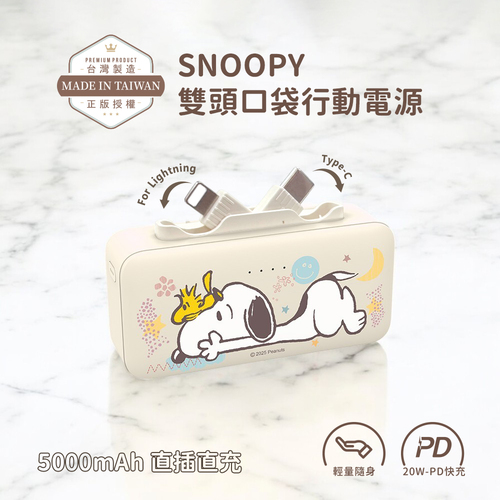 【正版授權】SNOOPY史努比雙頭口袋充行動電源 5000mAh-微笑趴款