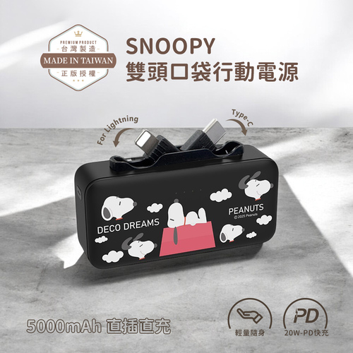 【正版授權】SNOOPY史努比雙頭口袋充行動電源 5000mAh-白雲紅屋