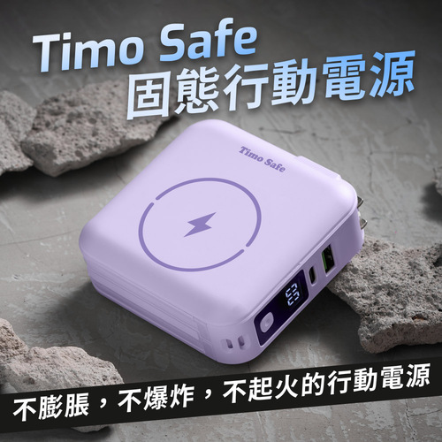 Timo Safe 安全防爆電芯 多功能磁吸固態行動電源 12000mAh-紫色
