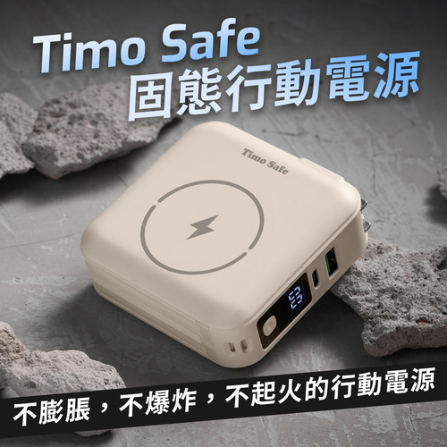 Timo Safe 安全防爆電芯 多功能磁吸固態行動電源 12000mAh-奶茶色