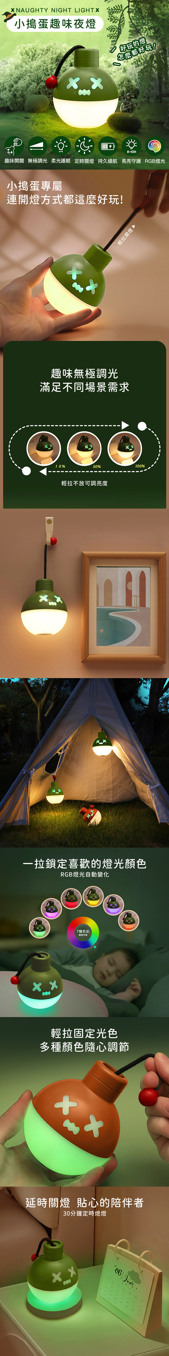 - 燈光自動變化,一拉鎖定喜歡色彩