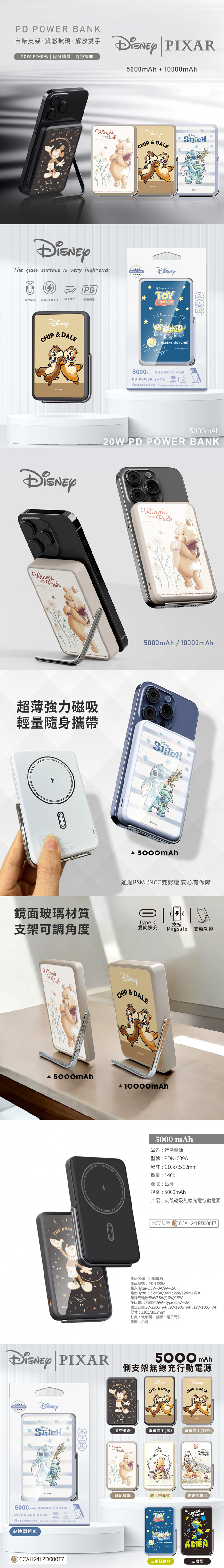【正版授權】迪士尼 側支架無線充行動電源 5000mAh-三眼怪踢球