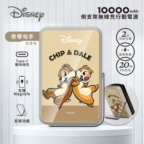【正版授權】迪士尼 側支架無線充行動電源 10000mAh-奇蒂勾手(奶茶)