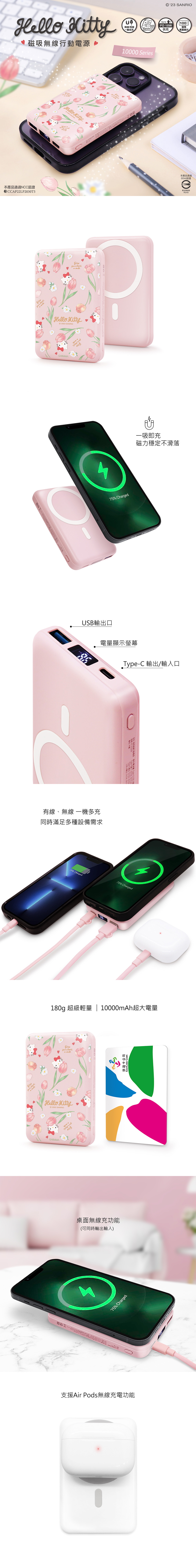 永橙Garmma 10000 Hello Kitty 磁吸無線行動電源 鬱金香