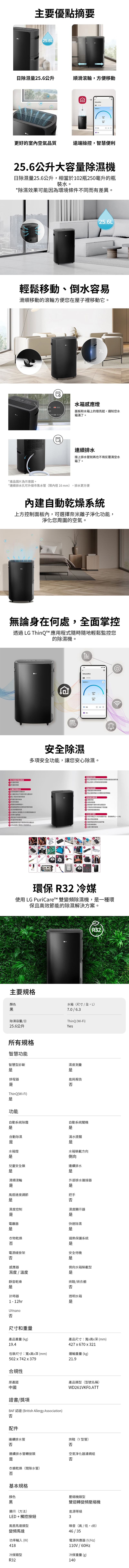 (預購)LG 25.6L PuriCare™WiFi雙變頻除濕機 WD261VKF0 (曜黑)_預計1/14後陸續配送
