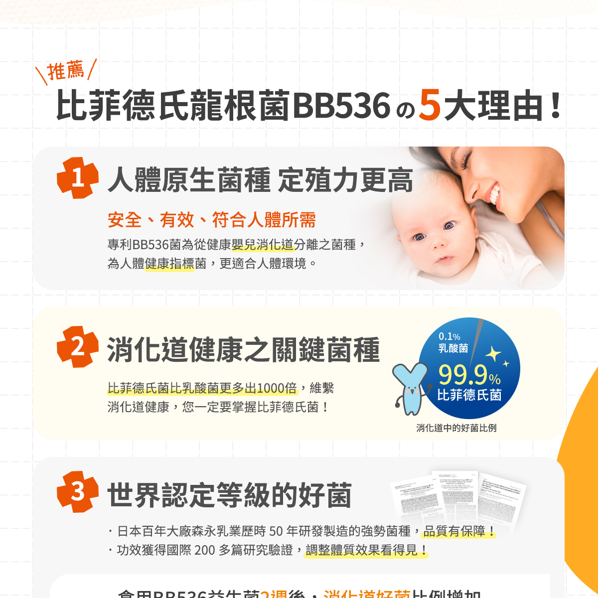 - 嚴選確實有效專利菌株「BB536比菲德氏龍根菌」