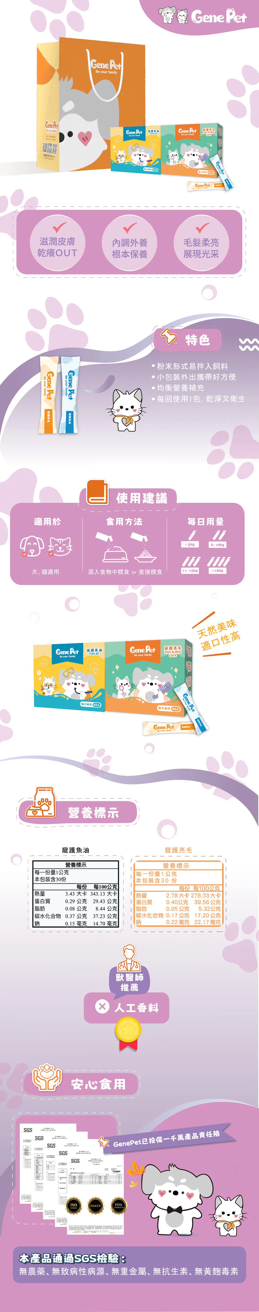 《寵護魚油》添加Omega-3,有助滋潤皮膚、乾癢OUT。