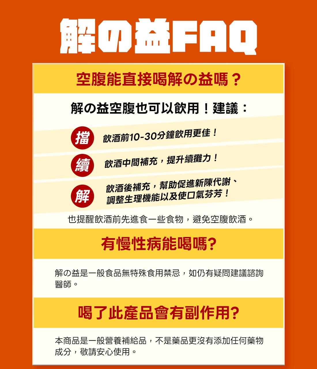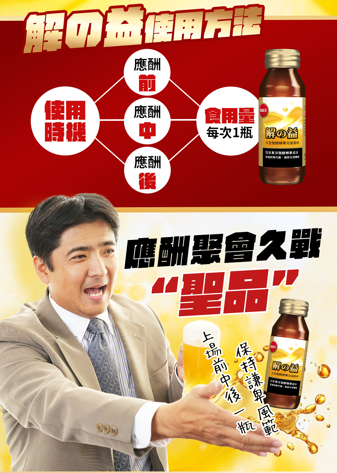 - 全台市占第一名解の益,促進新陳代謝、應酬好搭檔