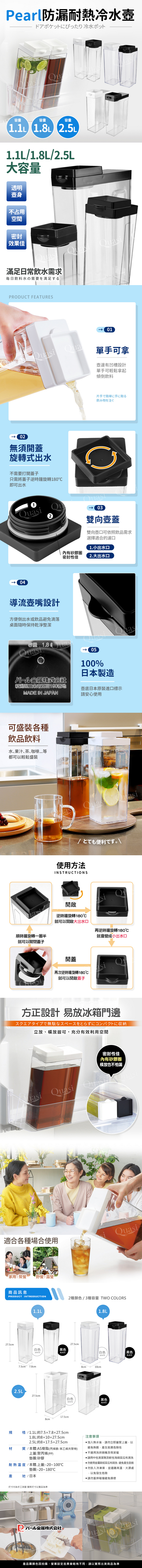 【Pearl】日本防漏耐熱冷水壺2.5L 二入組(白+黑)_C1567090-1