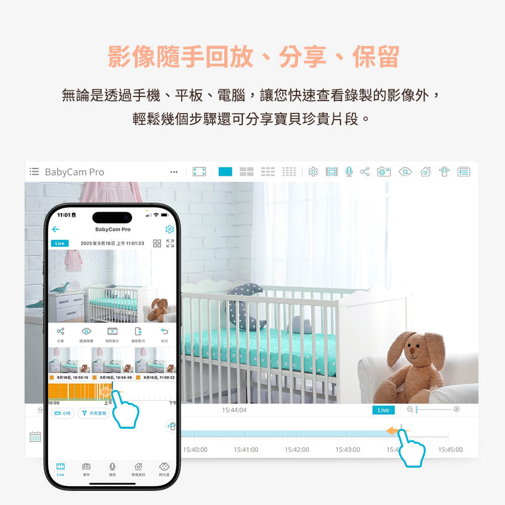 🖥️可多帳號共用與智能警示通知,外出也能即時掌握寶寶狀況。