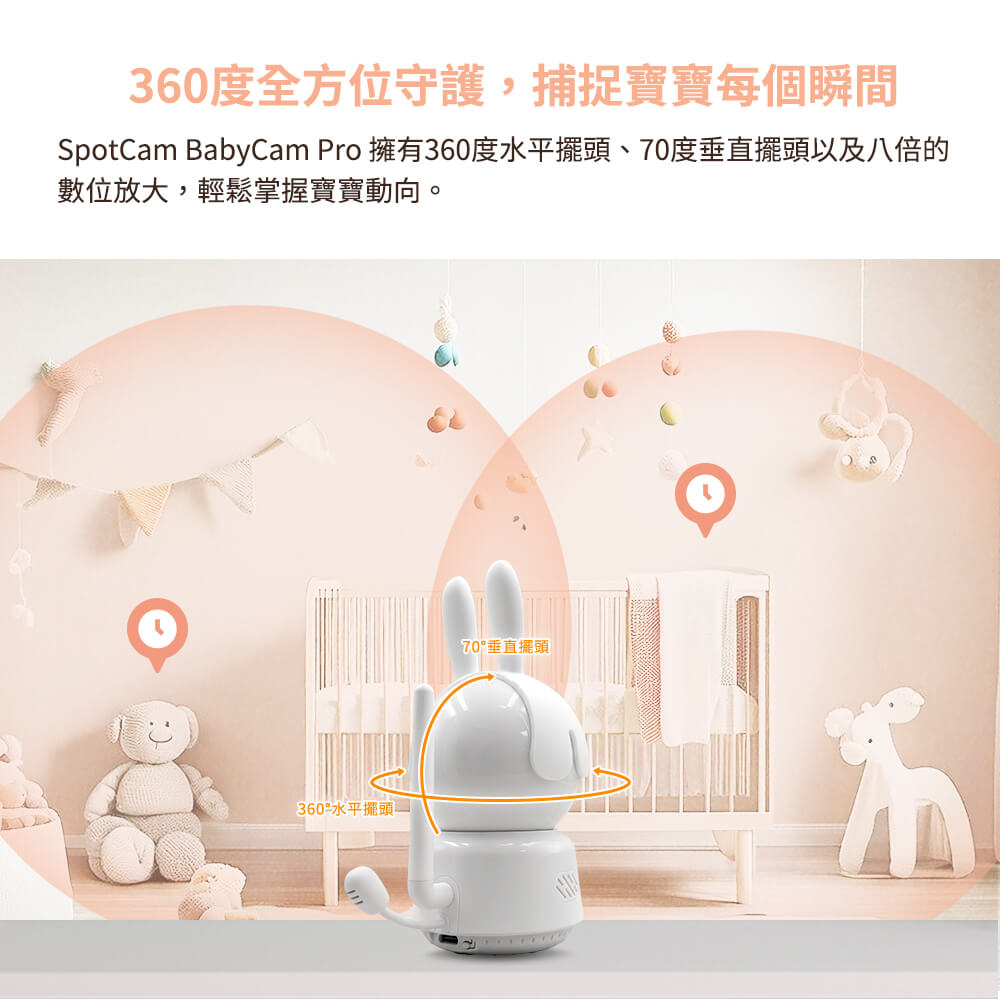 ⭐ 可擺頭水平360度、垂直70度與8倍數位變焦,寶寶動態不錯過