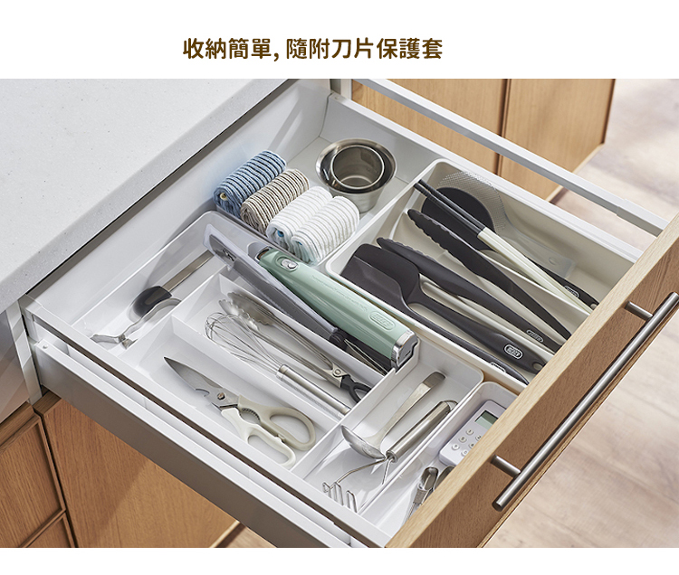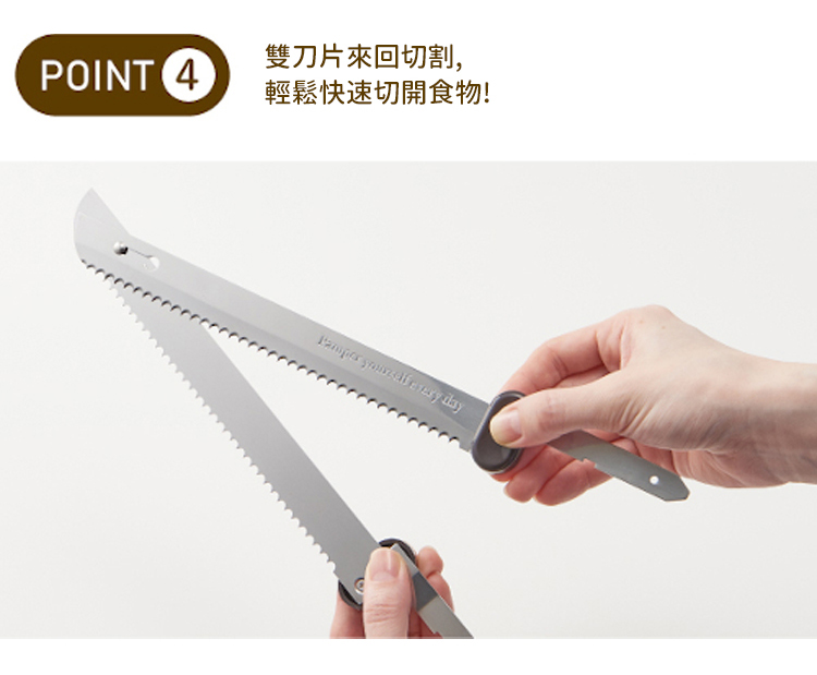 - 雙刀片來回切割, 輕鬆快速切開食物!