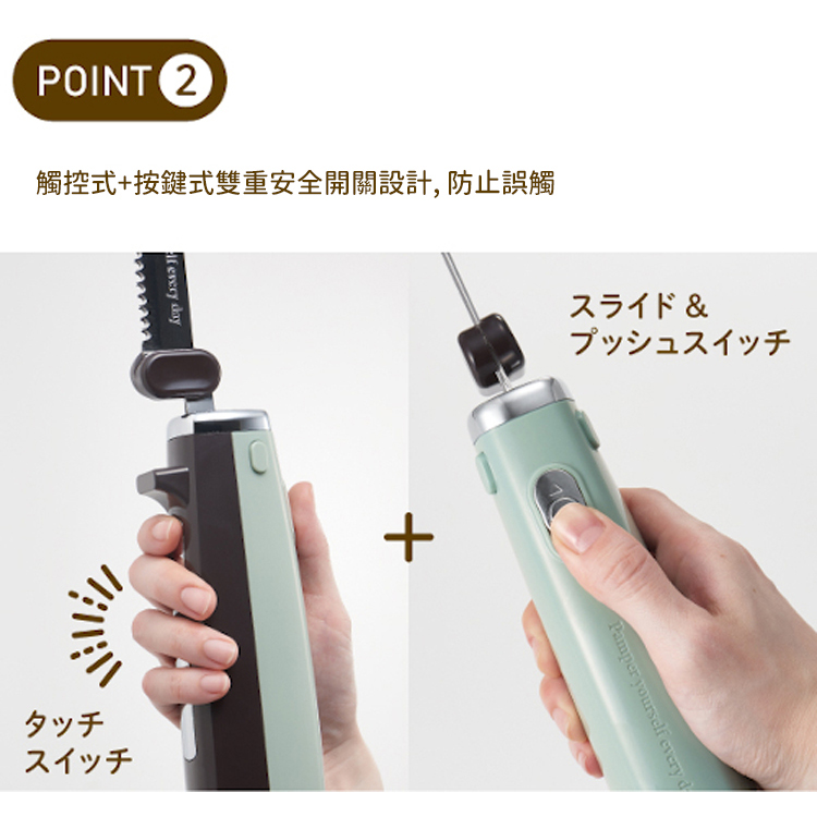 - 觸控+按鍵雙重安全開關設計, 防止誤觸