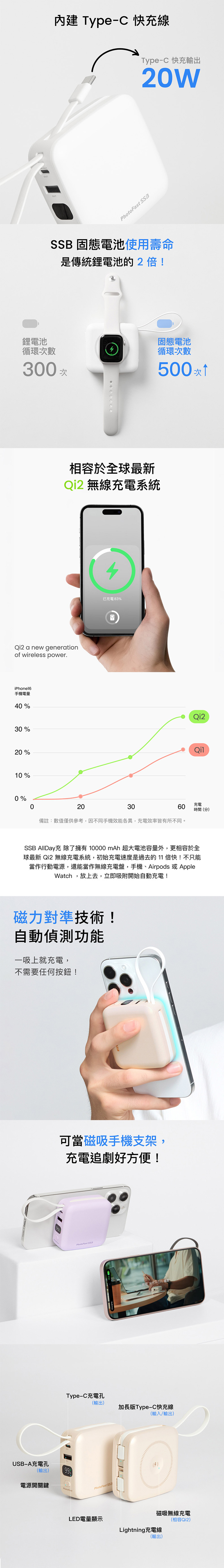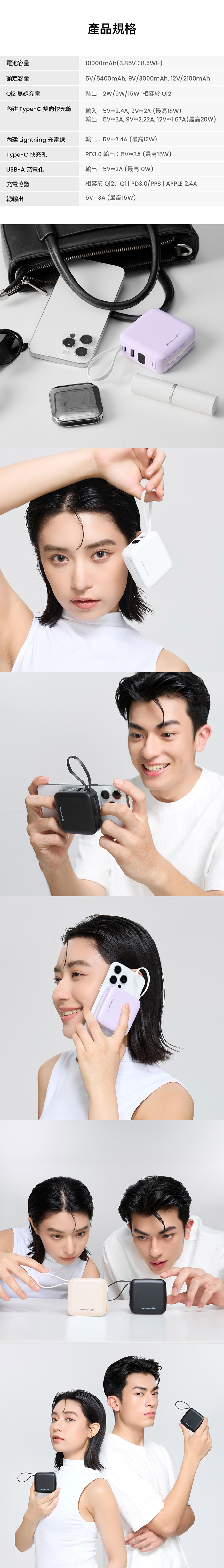- 內建Type-C快充線和Lightning線,使用更方便