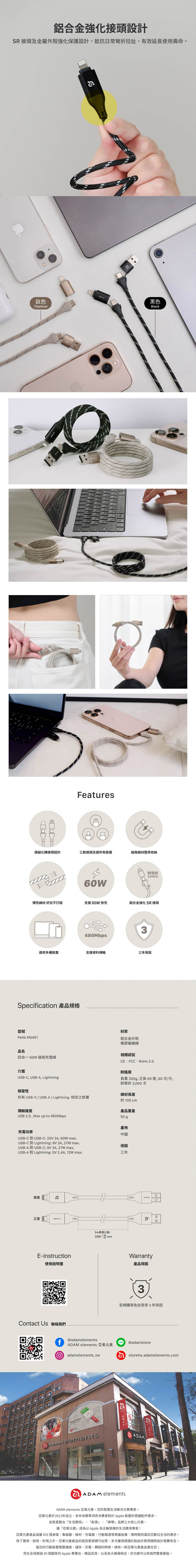 - 金屬材質的鋁殼及SR接頭強化設計,有效延長產品壽命。獨特柔軟尼龍編織線材,可靈活使用不易打結且耐用。