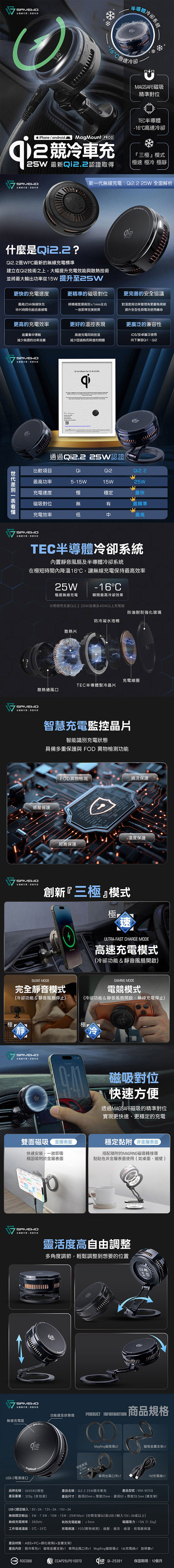 SAVEWO 救世 MagMount PRO2 Qi2.2 25W 競冷車充(MM-W25Q)