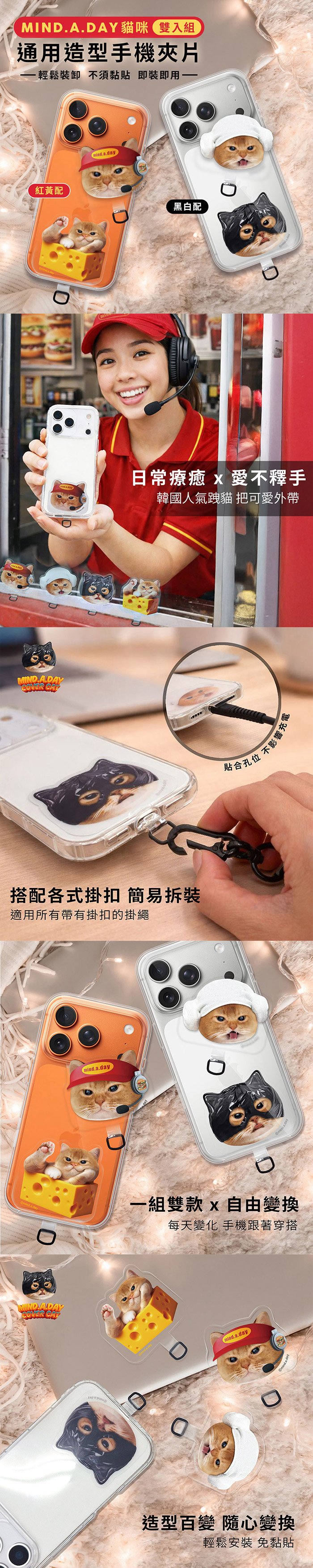 【正版授權】Mind.A.Day貓咪 通用造型手機夾片雙入組-紅黃配