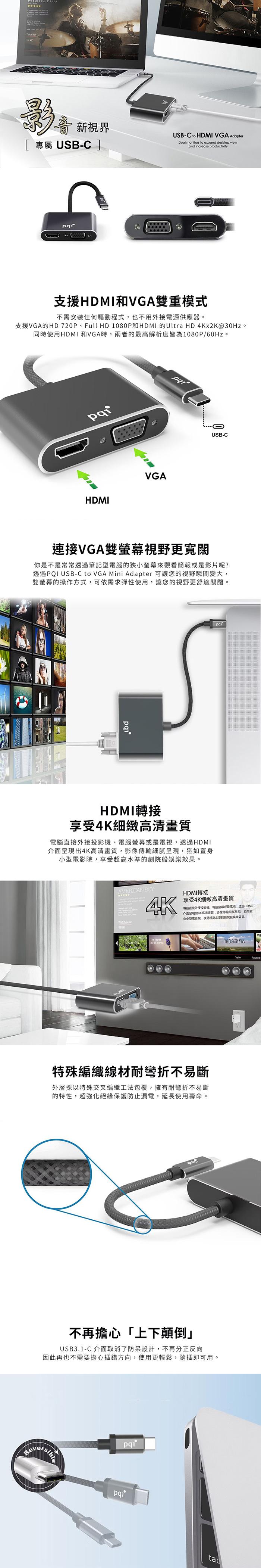 pqi USB-C to HDMI VGA 影音轉接器
